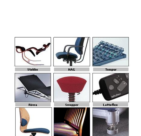 In unserem Sortiment finden Sie Produkte vieler verschiedener Kategorien von vielen namhaften Herstellern aus dem Bereich Ergonomie. Schauen Sie sich doch einfach mal ein wenig um und informieren sich zu diesem Thema. Wenn Sie Fragen haben oder wir Ihnen ein unverbindliches Angebot erstellen sollen, zögern Sie nicht und schreiben uns eine e-Mail, rufen Sie uns an oder besuchen Sie uns. Wir würden uns freuen Ihnen mit Rat und Tat zur Seite stehen zu können. |