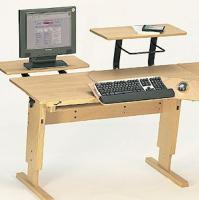 -6fach höhenverstellbar bis zu einer Arbeitshöhe von 80 cm. -Arbeitsplatte stufenlos neigbar. Der Neigungsmechanismus ist so konzipiert, dass sich die Arbeitshöhe bei geneigter Arbeitsplatte kaum verändert. -Unterhalb der Arbeitsplatte befindet sich eine zusätzliche Ablage. -Die vordere Abrutschkante ist geteilt und damit getrennt absenkbar für links-rechts-händig Schreibende. -Standstabiles Kufengestell. -Erweiterung durch zusätzliche Anbaumodule vom Kinderschreibtisch zum Arbeitsplatz im Home office Bereich. |